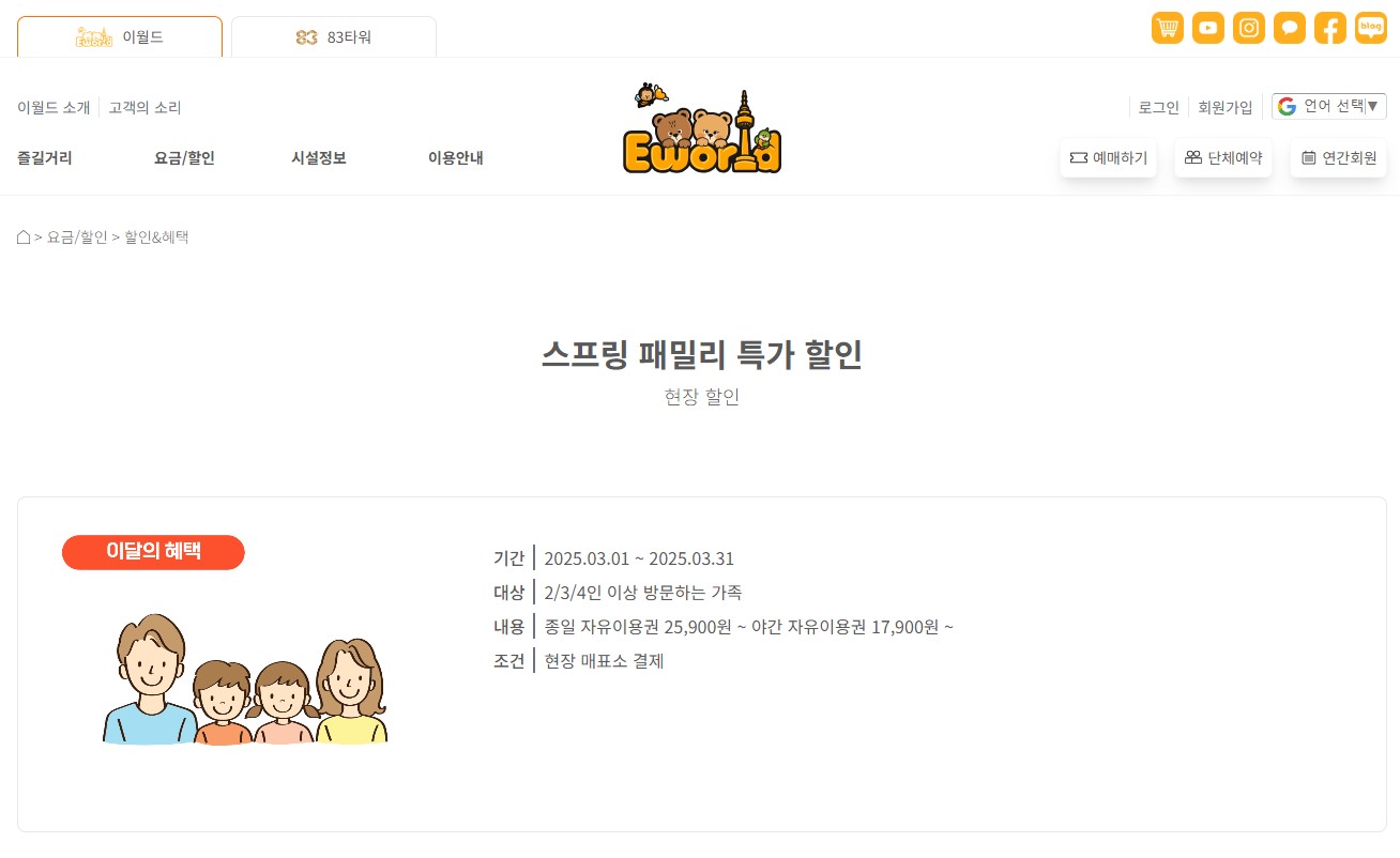 1)스프링 패밀리 특가할인(2/3/4인 가족을 위한)