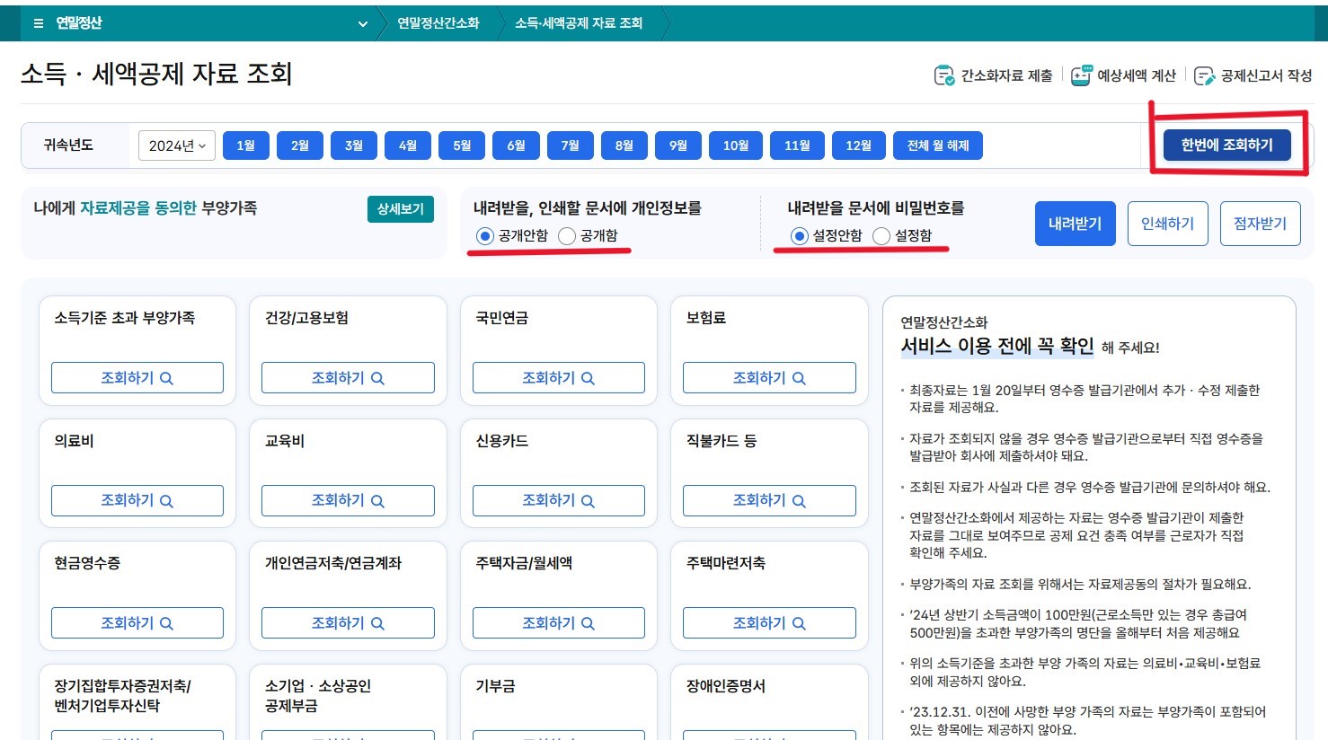 국세청에서 연말정산 간소화 서비스가 개통되어 24년의 자료를 조회할 수 있습니다.