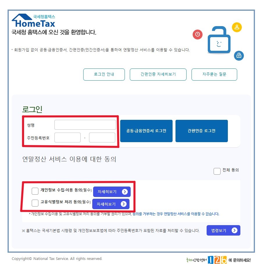홈택스를 통해 연말정산 자료 제공 동의를 진행하는 기간입니다.