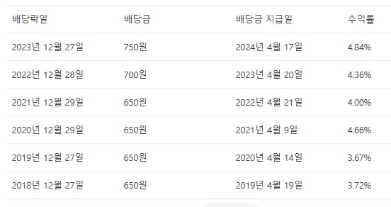 현재 차트상으로 보았을때 올해 배당 수익률은 4.9%로 보입니다.